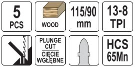 Полотна д/электролоб.дерево 13-8 TPI, 5шт YATO (YT-3408)