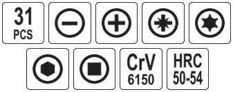 Биты TORX (25мм): T10, T15, T20, T25, T27, T30