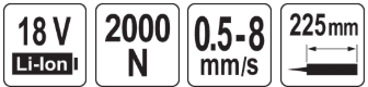 Аккумуляторный пистолет для клея и герметика 18V, 225мм, без АКБ, YATO (YT-82889)