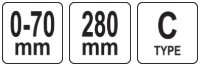 - рабочий диапазон до 70 мм, максимальная глубина захвата до 70 мм